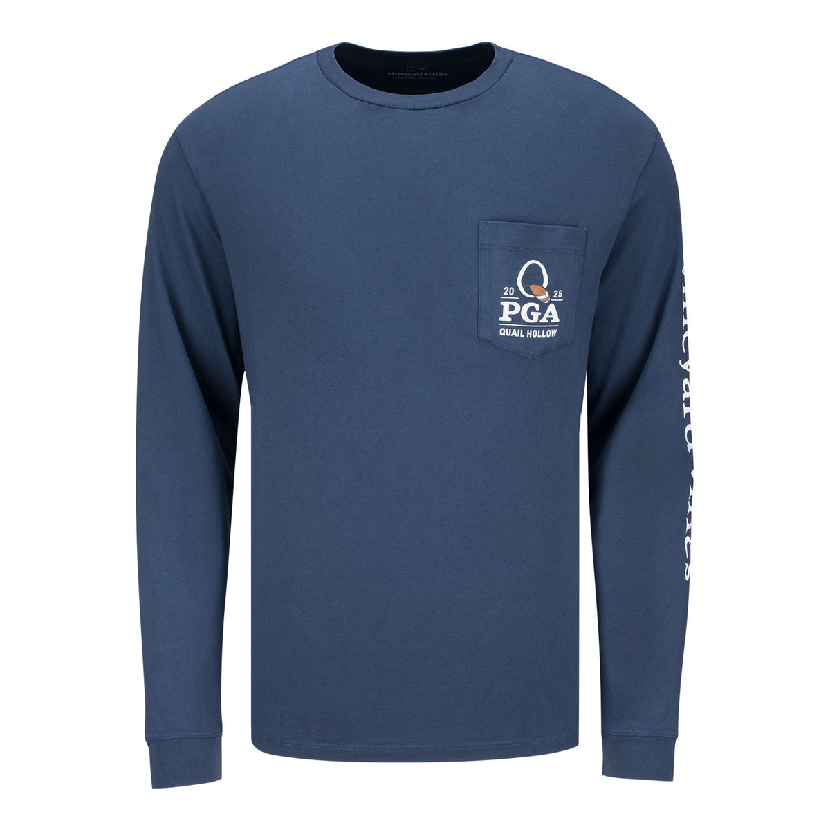 This long sleeve shirt features a full shoulder back design with the Quail Hollow clubhouse text. Also has the classic Vineyard Vines text logo down the sleeve. Includes the 2025 PGA Championship logo on the left chest.